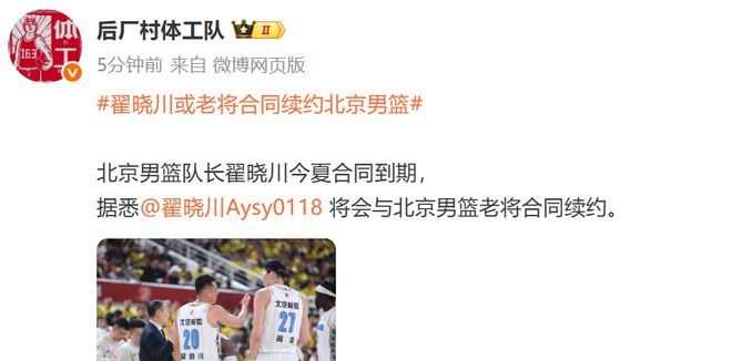 雷速体育5月26日讯 据媒体人“后厂村体工队”报道,翟晓川今夏合同到期,休赛期将会与北汽以老将合同续约。